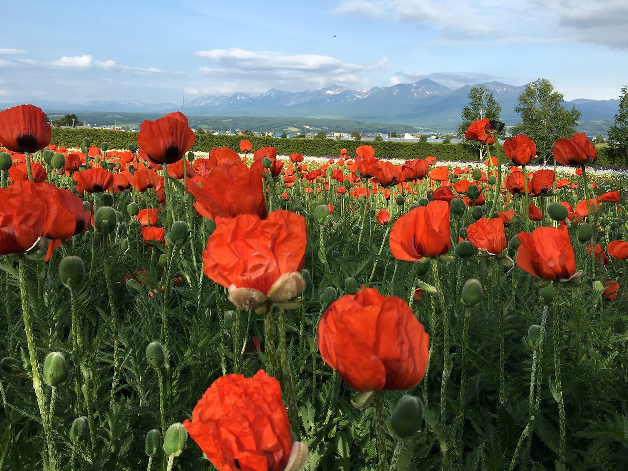 여름의 뜨거운 태양을 듬뿍 받은 농작물, 과일, 그리고 각양각색의 꽃들이 웅장한 설산 아래에 펼쳐진다. 후라노의 광활한 평야와 구릉지대에 펼쳐진 꽃밭의 풍경이 바로 관광객들에게 익숙한 후라노의 여름 대표 이미지이다.