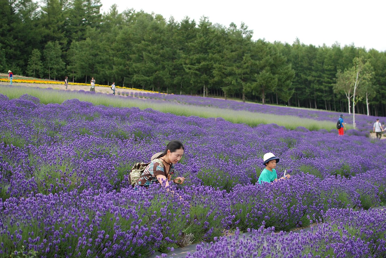 라벤다를 비롯한 다종다양한 꽃들의 향연을 한 곳에서 감상하기로는 역시 팜토미타ファーム富田만한 곳이 없다. 꽃이 개화하는 7월 초 성수기가 되면 일본 각지에서, 최근에는 해외 관광객들이 구름같이 몰려든다. 다행히 농장이 워낙 넓고 여러 종류로 분산되어 있어서 피크시즌에도 사람에 치여 스트레스 받을 정도는 아니다. 청명한 하늘 아래 드높은 설산, 그 밑에 아름다운 색색깔의 꽃이 펼쳐진 구릉과 대지를 바라보자면 마음 한켠에 남아있던 걱정과 근심이 어느샌가 다 사라져버린다. 포프리, 오일, 비누 등 라벤다를 이용한 상품라인도 훌륭하게 갖춰져있다. 농장 전체를 라벤다로 브랜딩하고 있다보니 약간 지나칠 정도의 보라색 사용이 귀엽기도 하고, 보라색을 사랑해마지 않는 나의 눈에조차 약간 거슬리기도 한다. 간판도, 종업원들 옷도 직원용 스쿠터도, 심지어 아이스크림도 모두모두 보라 보라 보라~