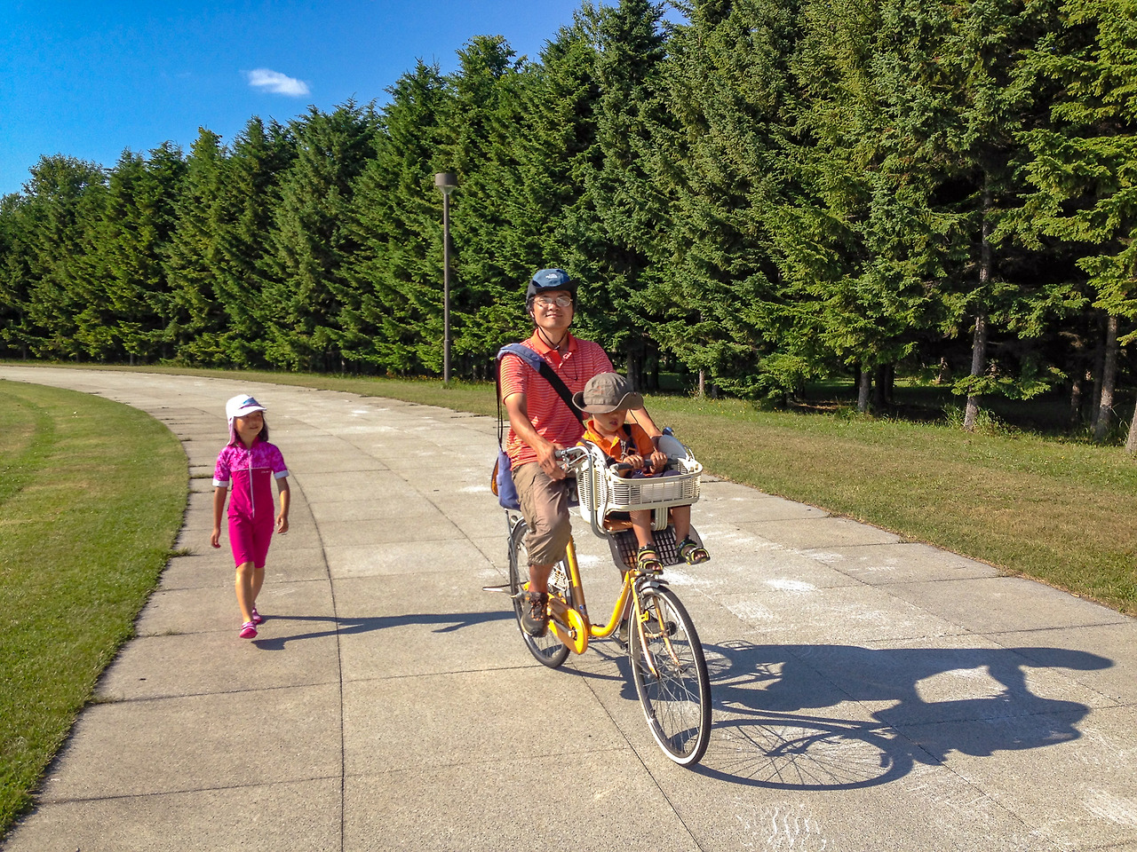 공원 전체 면적이 워낙 넓으니 아이들을 데리고 구석구석을 다 보기에는시간상으로나 체력적으로 무리입니다. 이 점을 배려해 공원 입구에서 자전거를 빌려주는데 이게 참 유용합니다. 한 시간에 100엔 정도로 저렴할 뿐 아니라, 아이용 작은 사이즈도 있고 유아를 같이 태울 수 있는 보조 시트가 달린 것 등 다양한 종류가 구비되어 있거든요. 아마도 첫 설계때부터 자전거로 구간을 이동하는 공원을 상정하고 있었는지도 모르겠어요.