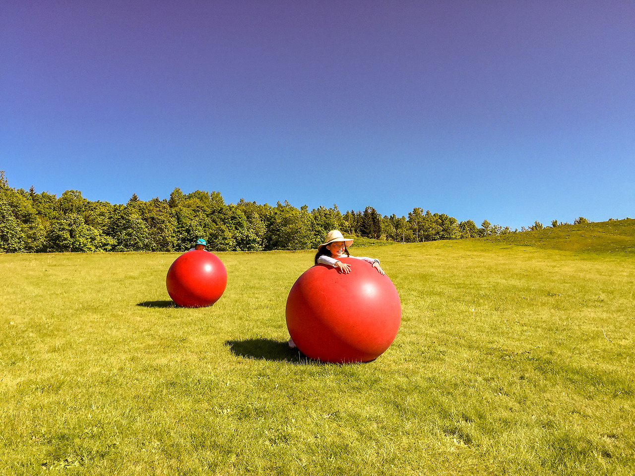 온통 잔디로 덮힌 넓디넓은 구릉에서 1.2미터 정도 크기의 고무공을 굴리고 노는 곳입니다. 잔디밭에 공 하나. 사실 너무나 간단한 조합이지만, 어른도 그 곳에 가면 동심이 되는 마술에 걸리고 맙니다. 파란 하늘과 푸른 잔디, 그리고 빨간 공이 만들어내는 선명한 대비가 얼마나 근사한지요. 얼굴이 발개지도록 뛰어노는 아이들을 찍는 사진사의 마음도 행복해지는 광경입니다.