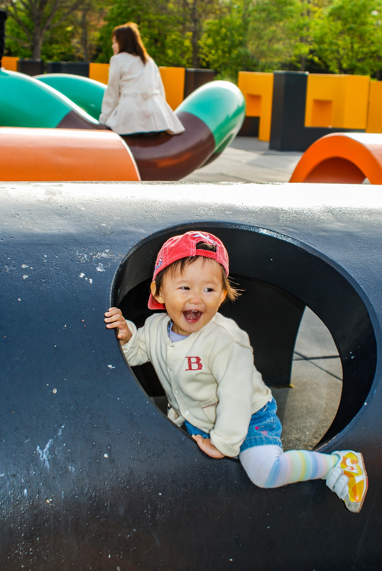 세계적인 조각가 이사무 노구치의 생애 마지막 작품으로 유명한 이 공원은, "전체를 하나의 조각 작품으로" 라는 독특한 컨셉을 바탕으로 설계되고 지어진 공원입니다. 실제로 이 공원을 거닐다보면 마치 하나의 커다란 현대 미술 작품 속에 들어가 있는 듯한 느낌이 들죠. 그 커다란 작품 속의 구성요소들로 존재하는 것들이 바로 아이들을 위한 놀이시설들입니다. 주변환경 및 자연과 어우러진 조화가 참으로 간결하면서도 아름다워 감탄을 자아냅니다. 보기에만 멋진 것이 아니라 실제 아이들이 신기하고 재미있어하며 한참을 즐겁게 그 안에서 놉니다.