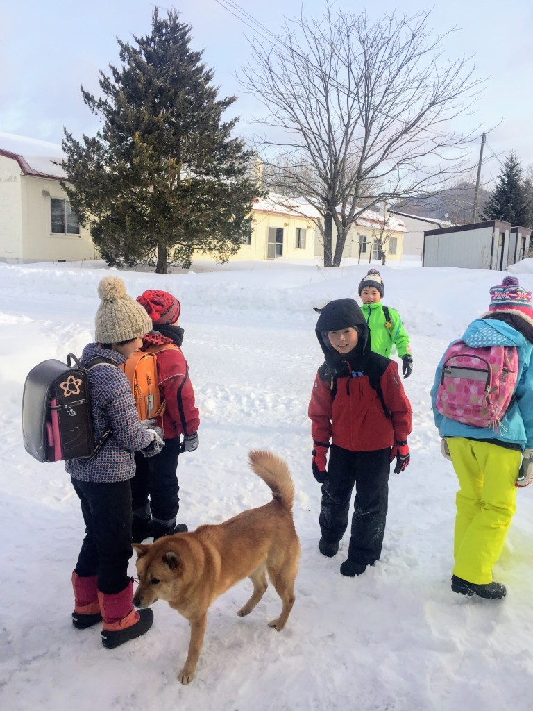 이 동네에 사는 히다카 소학교 아이들이다. 스키복과 두툼한 겨울모자, 장갑으로 다들 무장한 채이다. 눈이 오는 날에는 옷과 모자에 눈이 내려 다들 눈사람이 된 아이들 볼이 빨갛게 얼어있다. 같이 학교를 가자고 연수 민재를 데리러 온 것이다. 도보로 30분은 족히 걸리는 곳에서 영하 10도가 넘는 강추위를 뚫고 걸어오는 아이들도 있다. 그 모습이 안쓰럽고 예쁘서 마음같아선 한 명 씩 꼭 안아주고 싶다. 반갑다고 왕왕 짖어대는 곰순이를 현관밖으로 밀어낸다. 아이들이 기다리는동안 곰순이와 놀면서 조금이라도 추위를 잊을 수 있도록 하기 위해서다.
