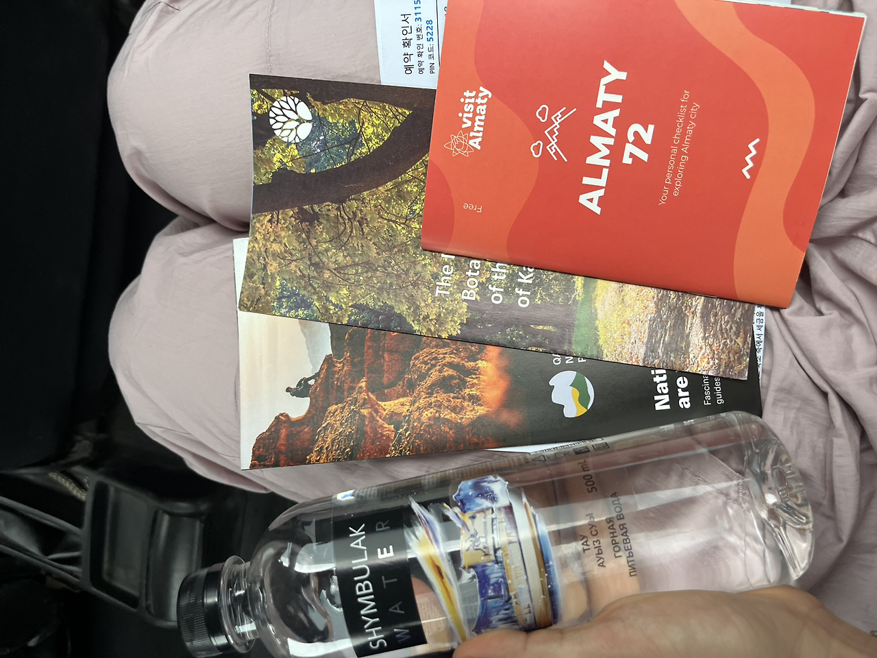 바로 안내 카운터에 여쭤봤더니 시내 가서 심카드를 구매 하면 좀 더 싸게 할 수 있단다. 그렇게 하기로 했더니 당장 심카드도, 와이파이도 사용할 수 없게 되어 택시 어플도 사용을 못하게 됐다. 그러면 혹시 택시를 불러줄 수 있겠냐 부탁을 했더니 흔쾌히 알겠다고 했다. 택시를 기다리면서 나는 알마티에 처음이고, 여행 계획이 있다고 말하게 되었고 택시를 불러주어서 정말 고맙다고 했더니 약간 기분이 좋아진 것 같아보였다. 신나서는 친절하게 물과 안내 팜플렛을 주고, 택시가 있는 곳까지 데려다 주었다.