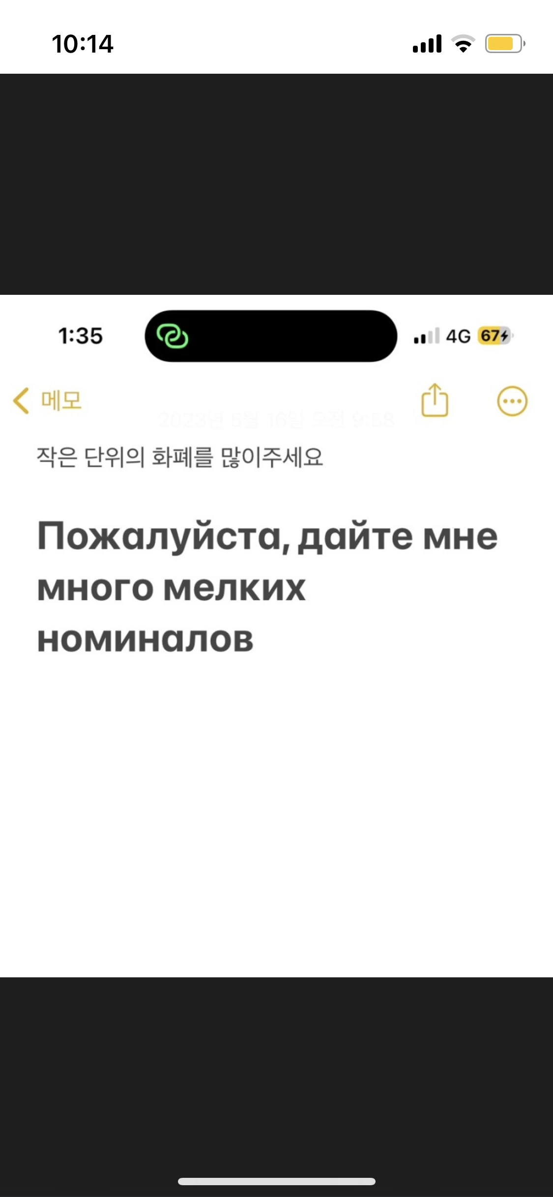 비행기 시간이 좀 연착이 되었다. 카자흐스탄 쪽은 영어를 할 줄 아는 사람들이 많이 없다고 해서 공항 환전소에서 이런 메모를 보여줬다는 블로거의 글을 보고 따라 캡쳐해보며 비행기를 기다림
