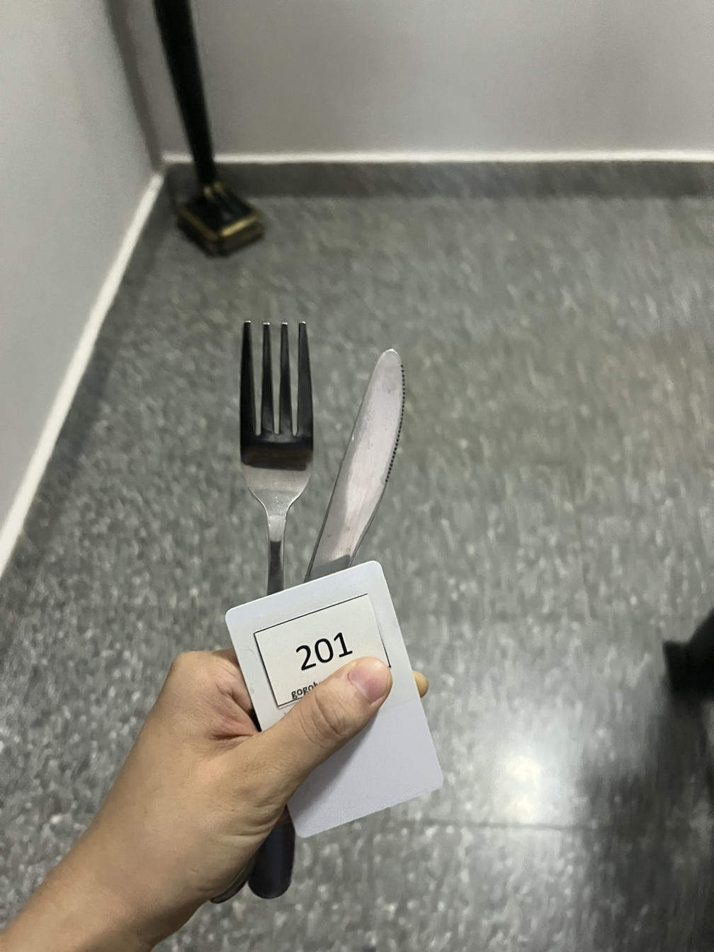 나이프와 포크를 빌려와서 저녁을 먹고 잠에 들 준비 끝~~