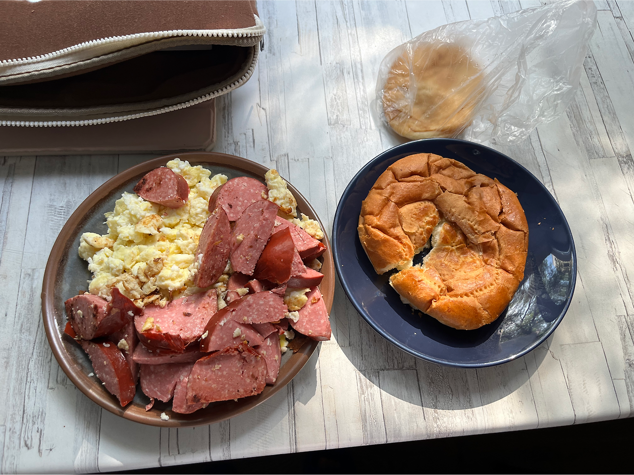 전날 마트에서 사온 재료로 아침을 해먹었음