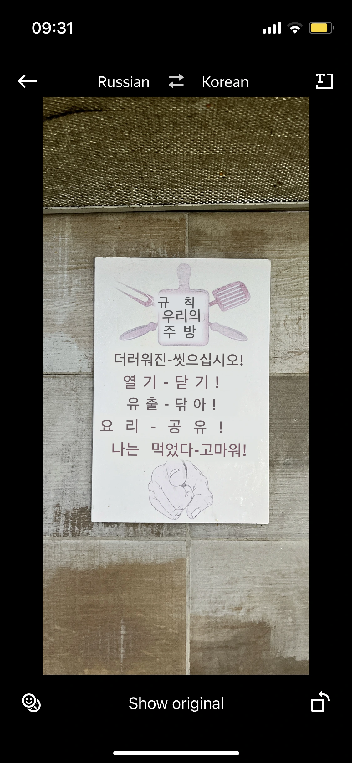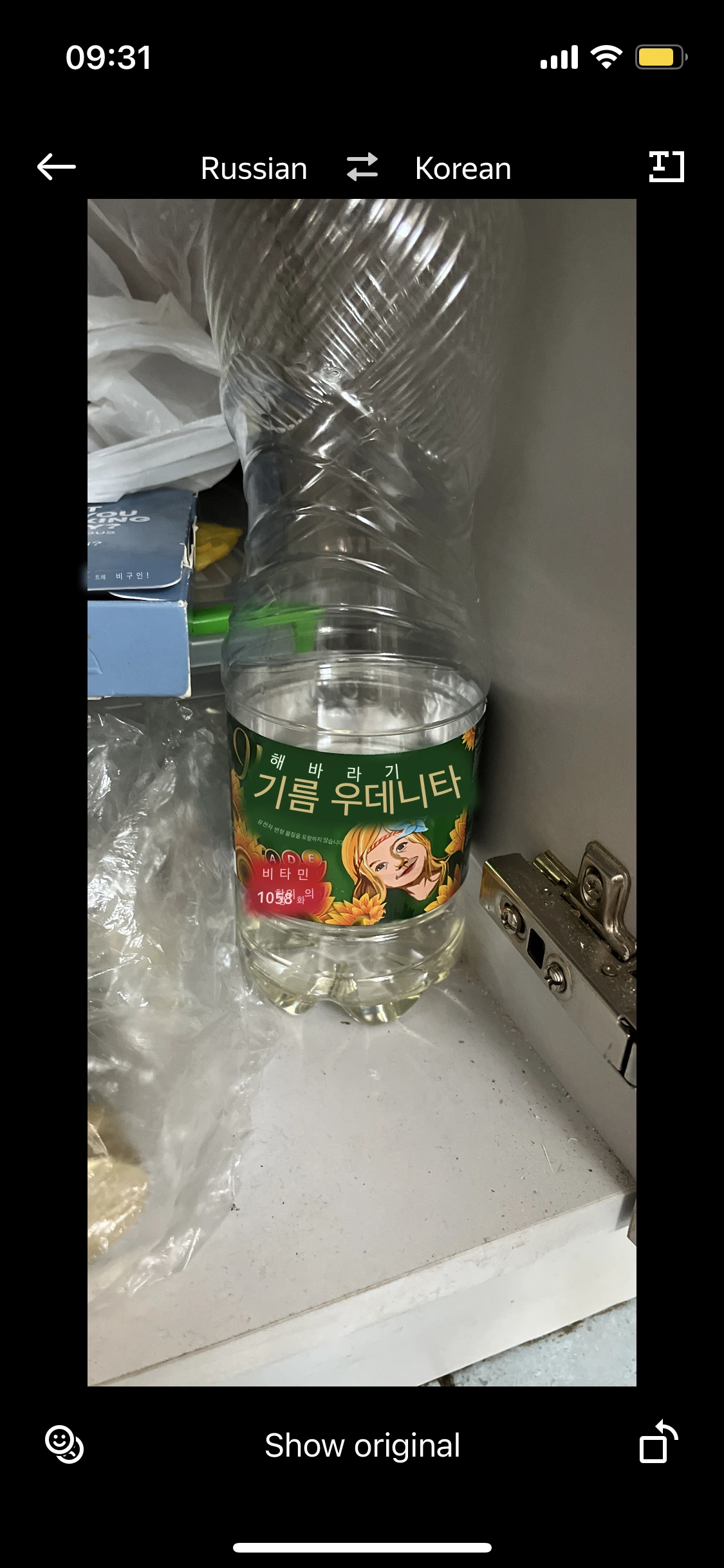 러시아어로 적혀있어서 번역기 돌려 해석해보았다 후라이팬에 계란을 구우려는데 기름을 못 찾겠어서 다시 번역기를 돌려본다