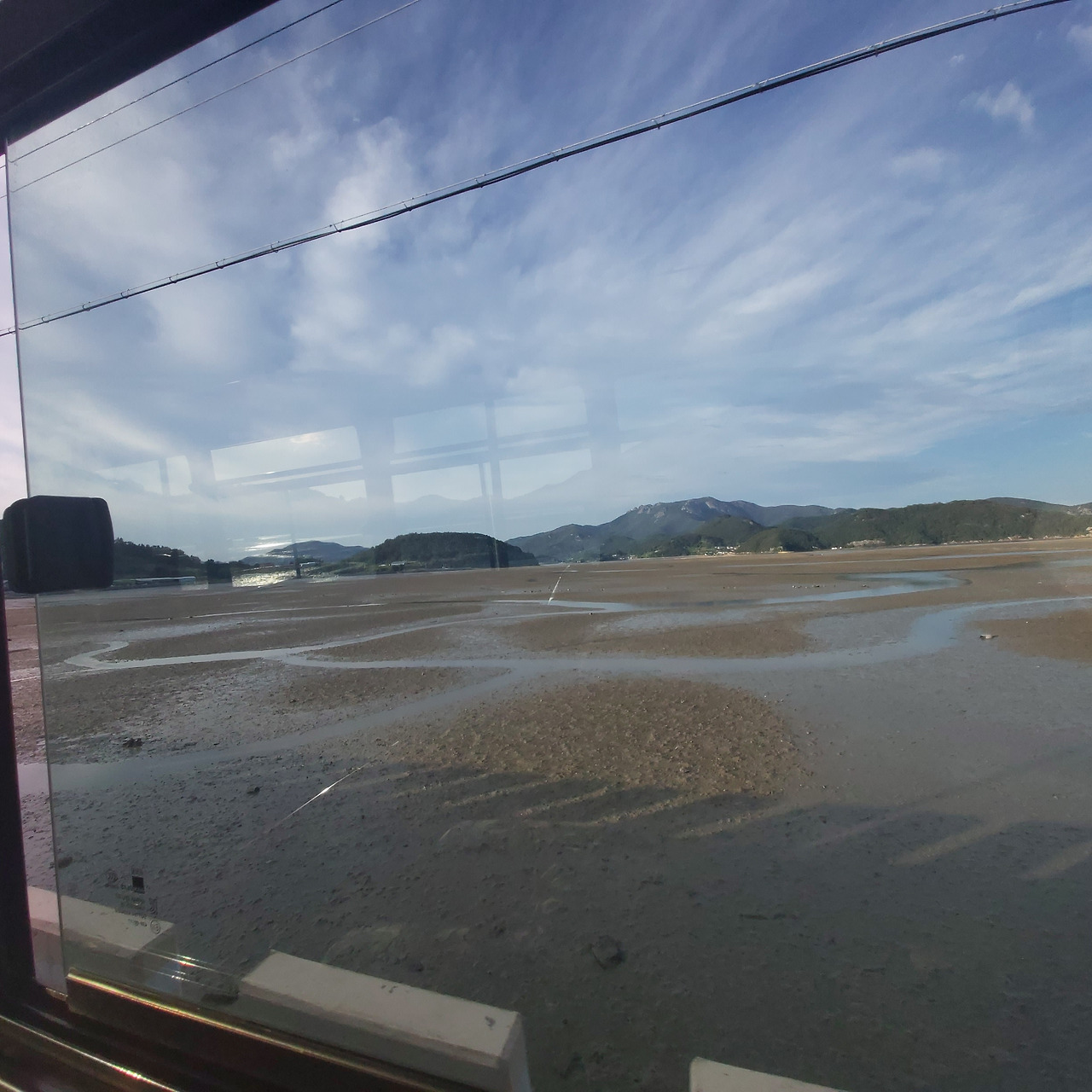 (위) 출근길 버스 창가로 보이는 해창만과 (아래) 오도 갯벌.