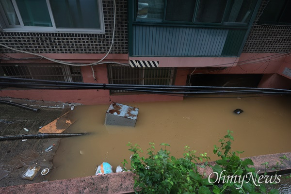 (좌)22년 있었던 신림동 반지하 침수, (우)특별케이스인 그녀와 중국동포 이웃들의 뒷모습이다(출처 : 오마이뉴스).