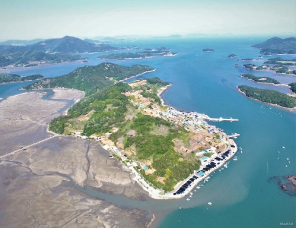 물이 막 차오르고 있는 섬과 섬을 잇는 갯벌이다. 이 갯벌을 다리가 잇는다.