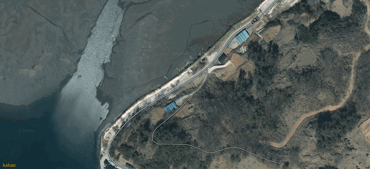 작년 초여름 오취마을에 들어왔으니, 실제로 벚꽃을 보게 된 건 반년이 지난 첫 봄을 맞이했을 때다. 마을에서 적지 않은 시간을 보내며 매일매일 출퇴근으로 오간 길이었지만, 평범한 가로수들이 있구나, 별 감흥을 가지지 못한 길. 갑자기 피어난 벚꽃에 너무 아름다워 놀랐다. 사실 감흥이 없을 법했다. 포털 지도의 위성사진으로도 볼 수 있을 정도의 굴 패각더미들인데, 겨울 내내 적치되다, 초봄이 되면 본격적으로 썩기 시작한다. 수생동물의 흔적이 풍기는 바다냄새에 죽음의 냄새마저 섞인, 고약한 악취가 진동하니 그저 지나치기 바빴던 곳일 뿐이었다.