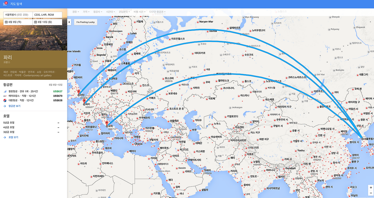 특히, 유럽이나 미주를 간다면 주변 도시의 가격도 한 번에 볼 수 있으니 조금 더 편합니다.