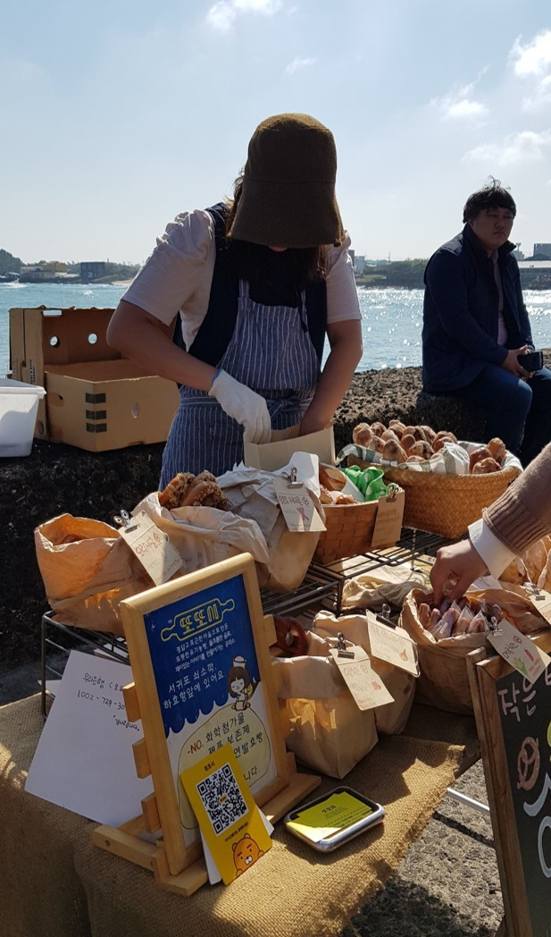 오전 열 한시, 해안도로변에 좌판 행렬이 차려진다. 잼, 쿠키, 빵, 다양한 수공예품이 사람의 손길을 기다린다.