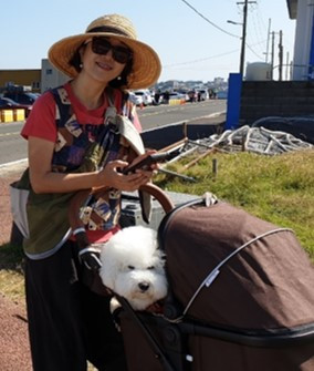 싫다는 꾸씨를 억지로 유모차에 태운다. 친구가 지나갈 때마다 인사한다고 내려달라고 짖었지만 못들은 척 한다. 그럴 때마다 심통이 나는지 더 크게 짖는다.