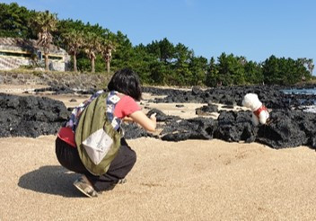 구름 한 점 없는 따사로운 햇살이 가득한 날, 현무암과 옥빛이 어우러진 종달리 해변을 찾는다. 잘 알려지지 않아 조용하고 한적해서 사진찍기 좋다.