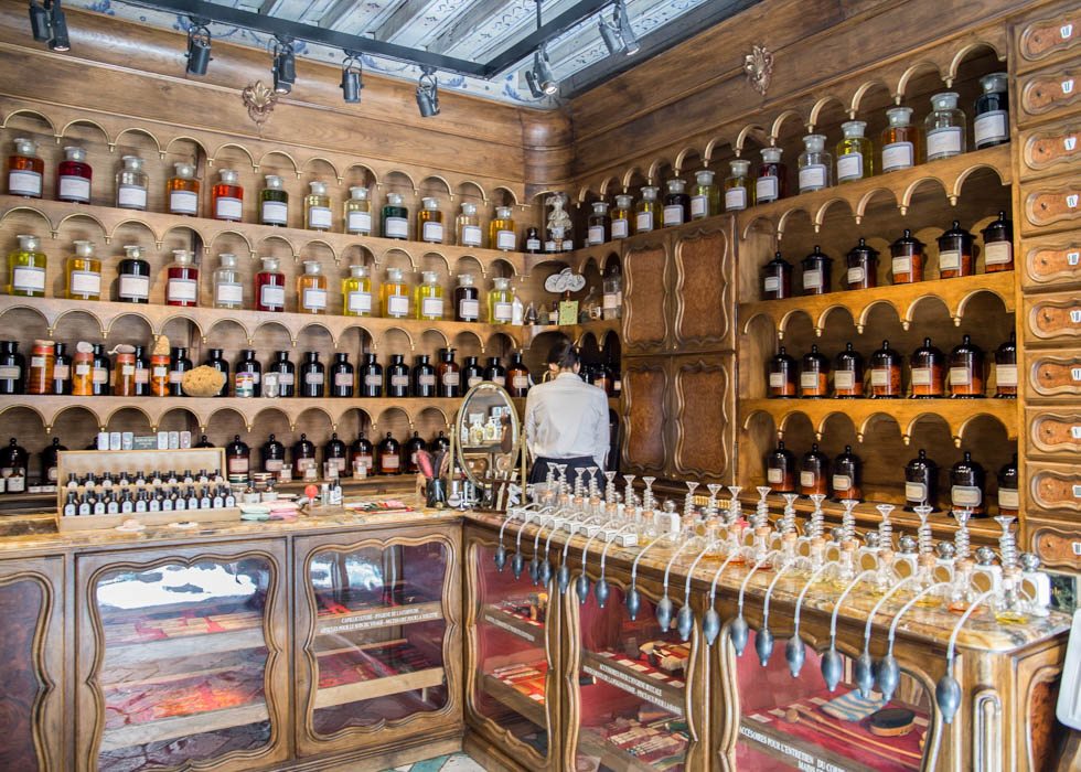 프랑스와 일본에서 방문한 불리 매장은 놀라울 만큼 비슷한 인테리어였어요. 고급 원목 탁자 위에는 그 시절 연구소처럼 둥근 플라스크와 실린더가 놓여 있고, 향수는 옛날처럼 펌프로만 시향 할 수 있었습니다. 벽면엔 옛날 책의 삽화에서나 볼 법한 캐비닛 안에 불리 제품이 줄지어 있었고요. 직원도 모두 그 당시 입었을 듯한 유니폼을 입고 손님을 1:1로 응대했습니다. 처음 들어갔을 땐 당황했어도 나올 때가 되어선 정말 1803년도에 다녀온 듯한 느낌을 받았을 정도로 일관된 공간 브랜딩을 하고 있어 놀랐답니다.