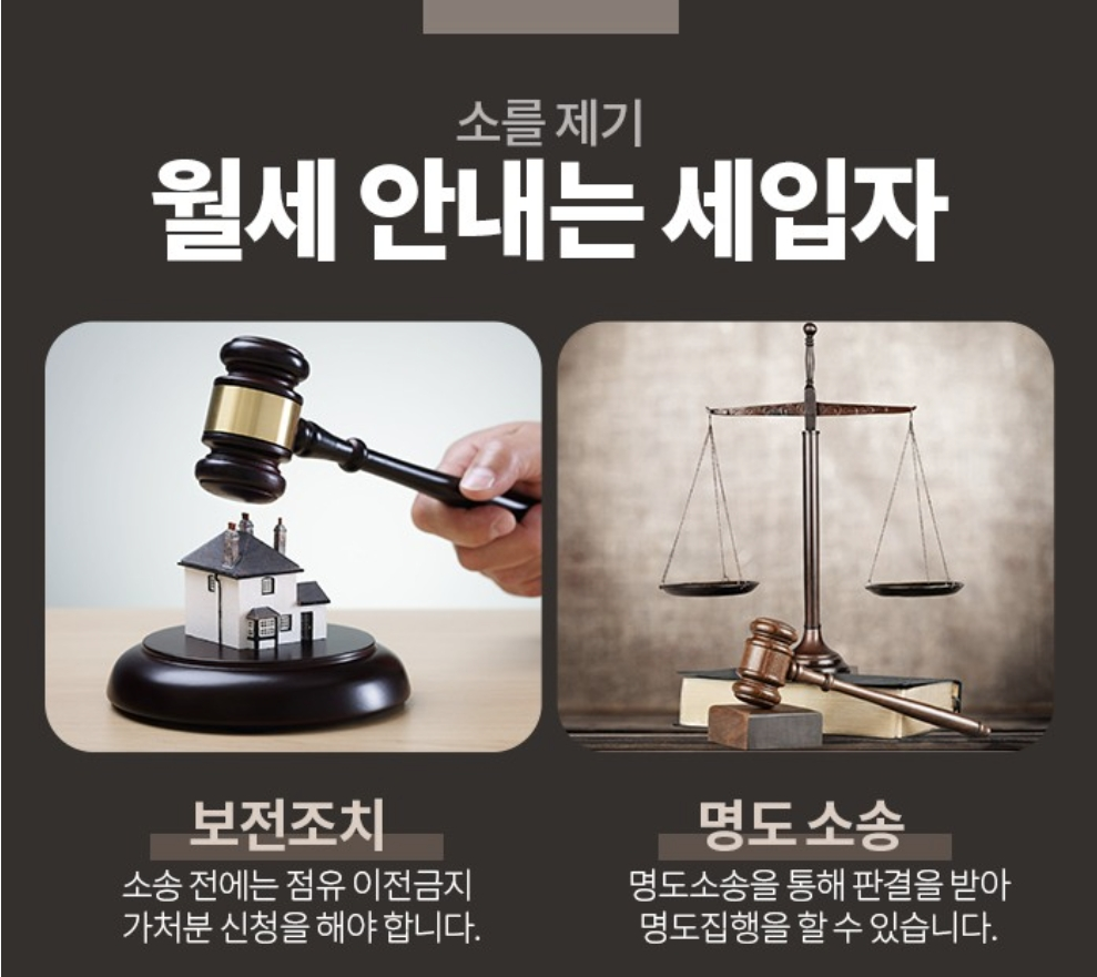 명도 소송 전에는 점유 이전금지 가처분 신청을 해야 합니다. 만약 소송을 진행하는 도중에 월세 안내는 세입자가 제3자에게 명의를 이전한다면 승소를 하여 판 결문을 받더라도 무용지물이 됩니다.