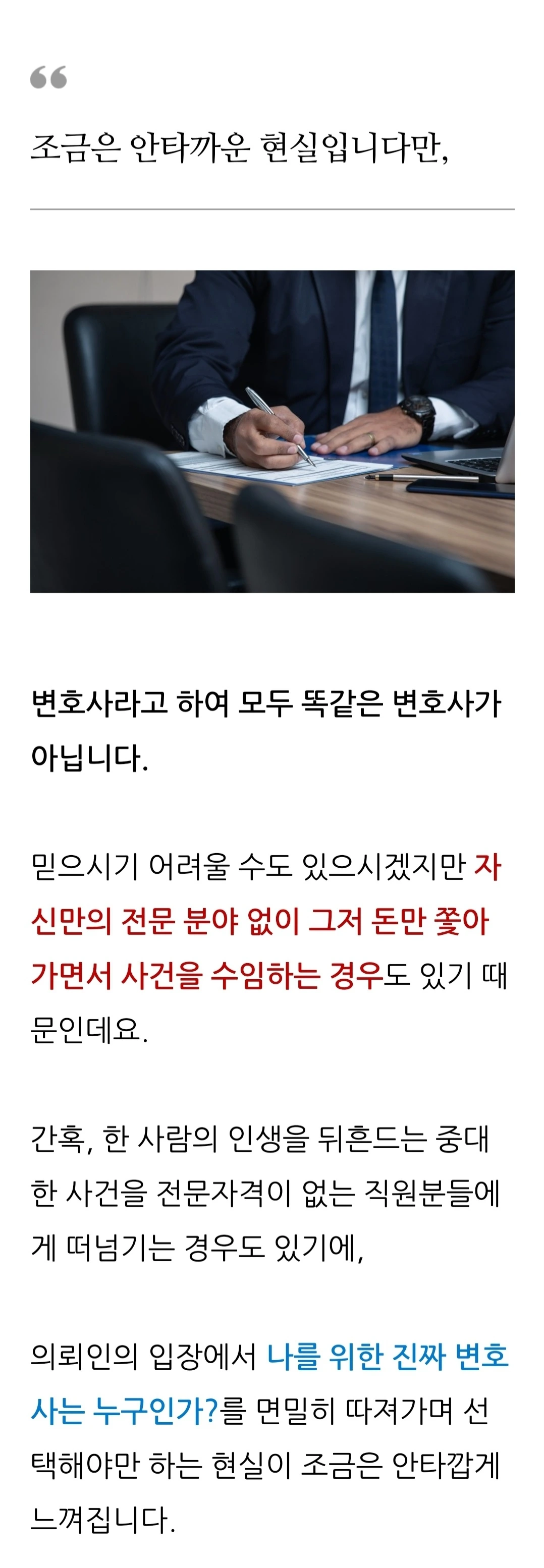 하지만 소송을 진행하시려면 혼자만의 힘으로는 어려 운 부분들이 상당히 많을 수 있죠. 그래서 법조인의 조언을 구해 나의 문제를 우선적으로 파악하고 그에 맞는 합리적인 방안을 찾아야 합니다.