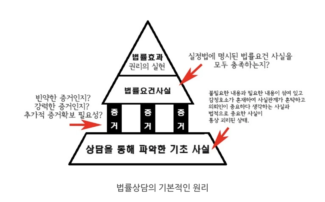 서면을 작성하거나 상담하는 경우는 비록 일반적으로 법조계에서 통용될지는 모르지만 종종 위험한 결과에 처할 수도 있는 것입니다. 법률 효과는 사실관계의 확정에서부터 나오는 것이고 사실 관계는 당사자인 의뢰인 누구보다 더 잘 알고 있으며 이를 직접 전해 들을 때 비로소 훼손 없는 전달이 가능하기 때문입니다. 훼손 없는 전달의 경우 형사소송법에서 전문 진술의 경우 증거 능력을 제한하듯이 그 중요성을 경시할 수 없습니다.