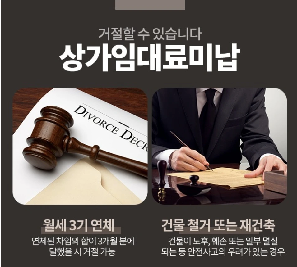 정당한 사유란 상가임대료미납 3기 이상과 건물을 철거 또는 재건축하려는 경우 등이 가장 대표적입니다.