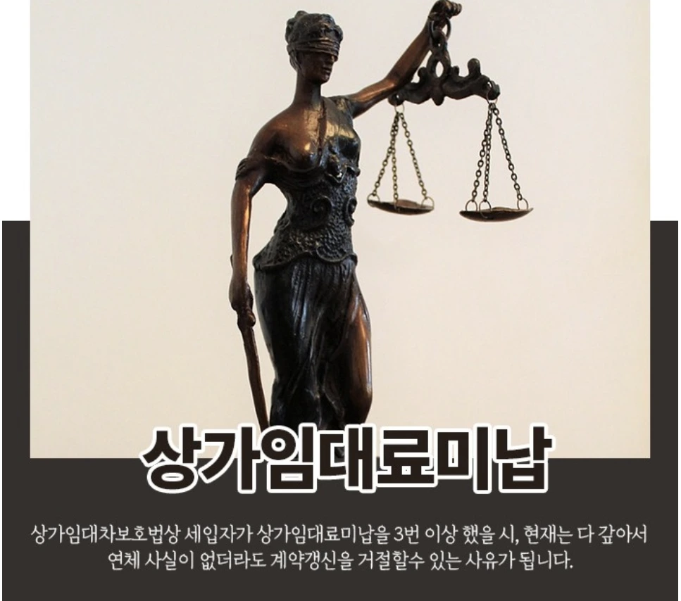 상가 임대차 보호법상 세입자가 상가 임대료 미납을 3번 이상 했을 시 현재는 다 갚아서 연체 사실이 없더라도 계약 갱신을 거절할 수 있는 사유가 된다고 알려드렸습니다