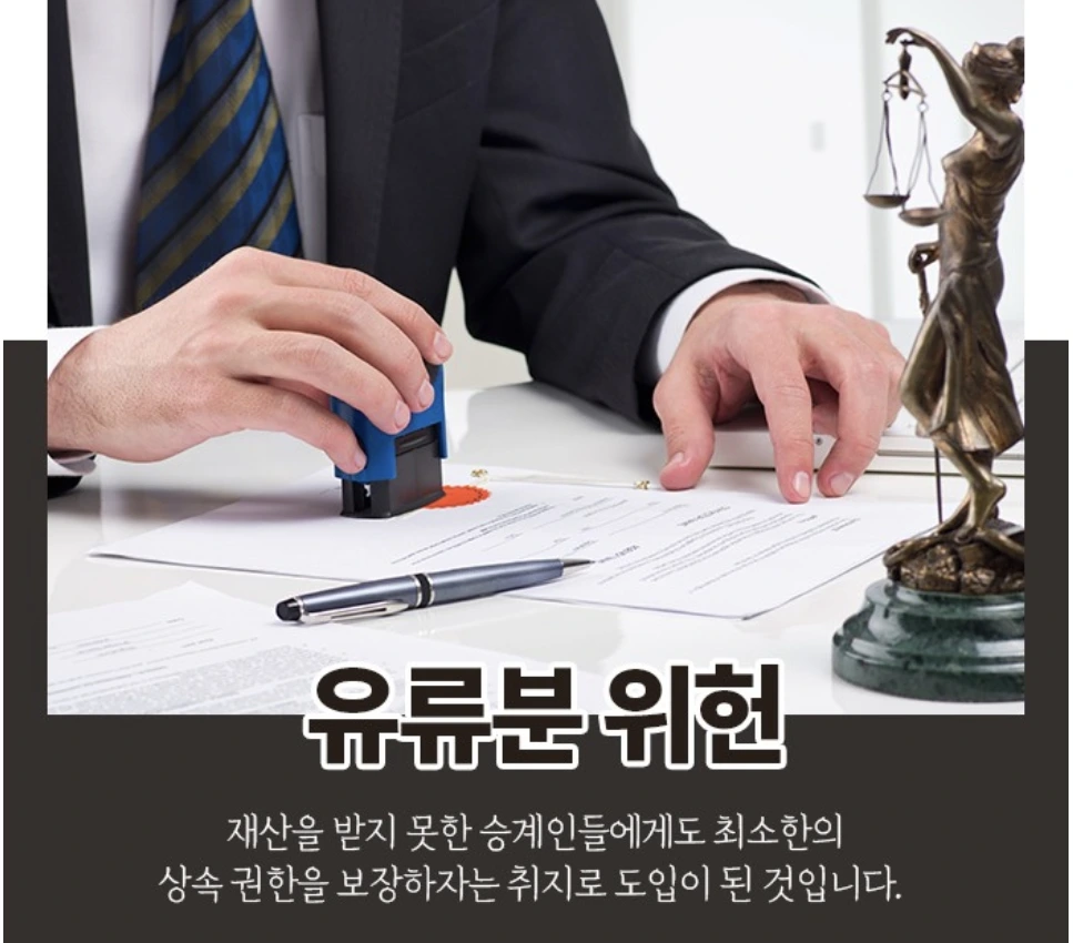 그렇다면 다른 승계인들의 입장에서는 억울한 일이 아닐 수 없는데요. 이때 재산을 받지 못한 승계인들에게도 최소한의 상속 권한을 보장하자는 취지로 도입이 된 것입니다.