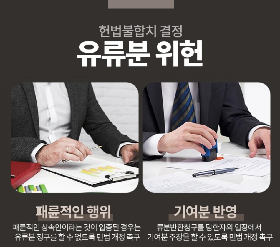 또 기존에는 유류분 소송을 당한 자는 망인에 대한 기여분을 반영해달라며 주장을 할 수 없었습니다. 해당 내용이 불합리하다는 의견이 많았는데 이 부분에 대해서도 헌법불합치 결정이 내려졌죠.