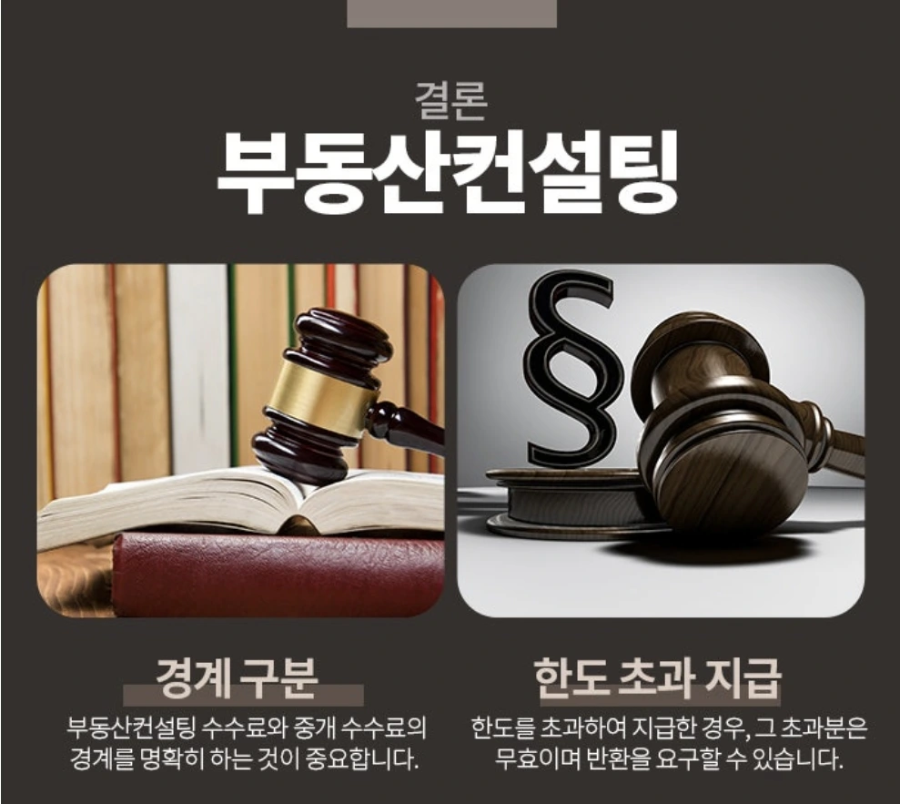 결과적으로 부동산컨설팅 수수료와 중개수수료의 경계를 명확히 하는 것이 중요합니다. 법정 수수료 한도를 초과하여 지급한 경우, 그 초과분은 무효이며 반환을 요구할 수 있습니다.