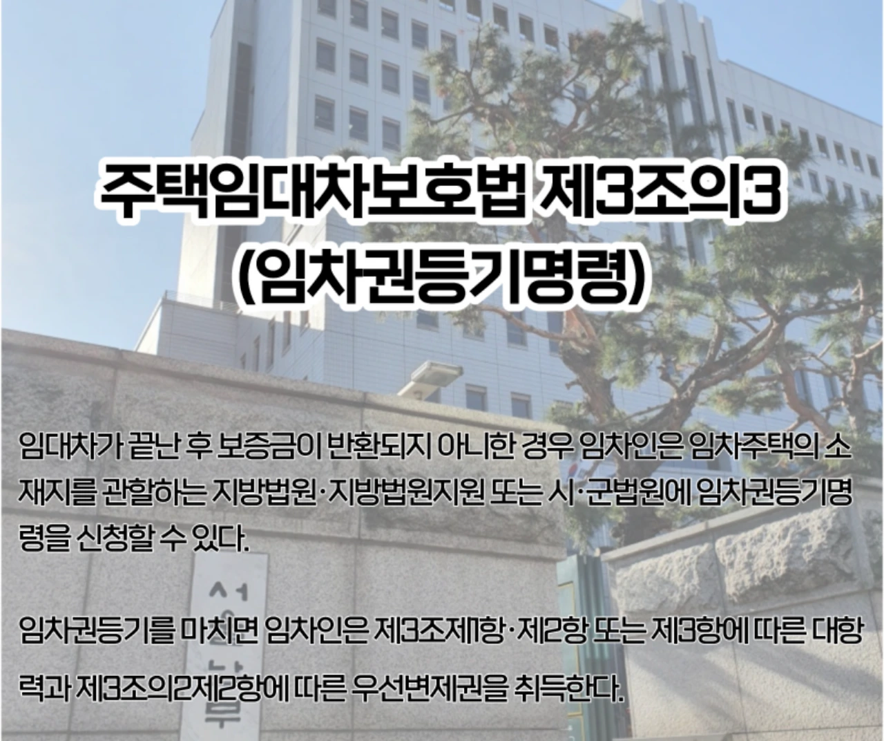 소송 절차에 돌입하기 전 관할 법원에 임차권등기명령을 신청하여 굳건한 법적 방어막을 쳐야 합니다.