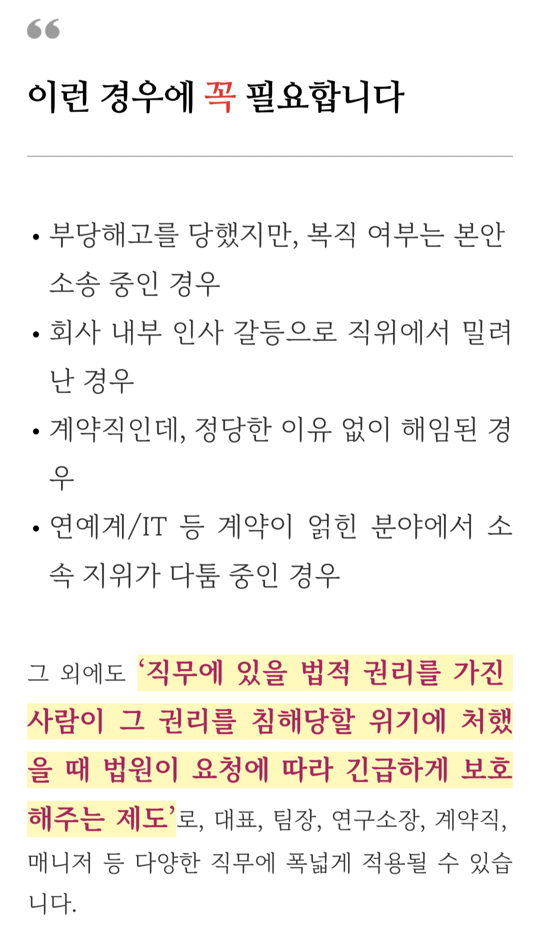 사례 2] 부당해고된 영업팀장의 직위 회복 위한 가처분 인용 사례