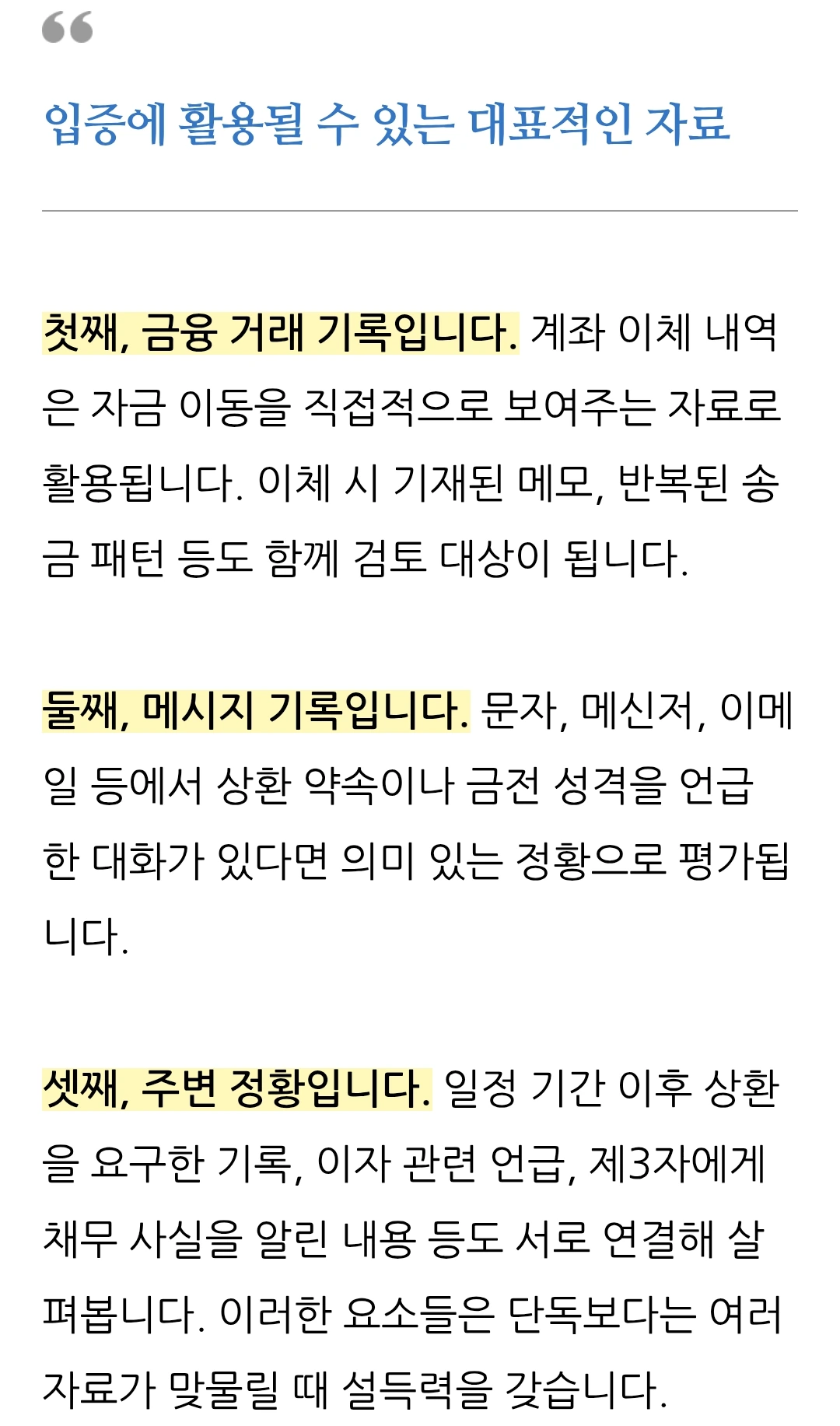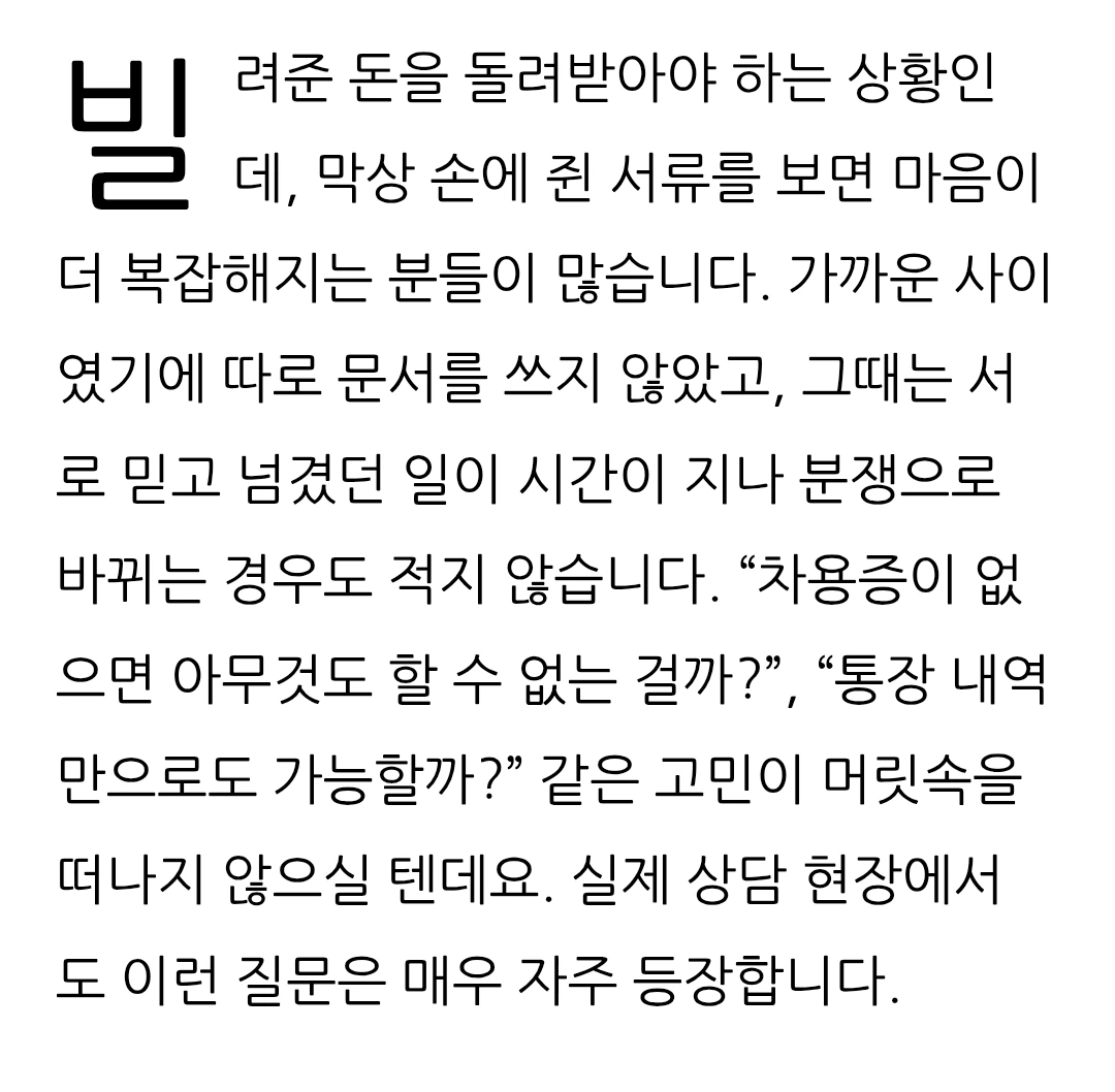 빌려준 돈 차용증이 없을 때 입증 가능한 자료는 어디까지일까?혼자 판단하기 어려운 이유