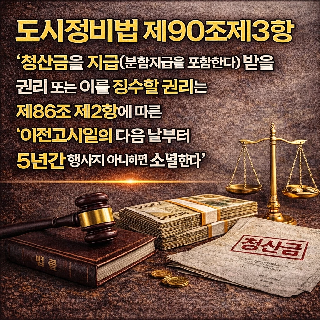 그리고 도시정비법 제90조제3항은 ‘청산금을 지급(분할지급을 포함한다)받을 권리 또는 이를 징수할 권리는 제86조 제2항에 따른 이전고시일의 다음 날부터 5년간 행사하지 아니하면 소멸한다’고 규정하고 있다.