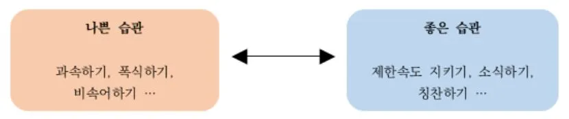 한 가지 안타까운 소식이 있다. 우리는 보통 좋은 습관보다 나쁜 습관에 더 끌린다는 사실이다. 생각해보자. 좋은 습관이라 하면 ‘제한속도 지키기, 조금씩 먹기(소식), 칭찬하기’ 등이 떠오른다. 반대로 나쁜 습관은 어떨까? ‘과속하기, 폭식하기, 비속어 하기’ 등이다.