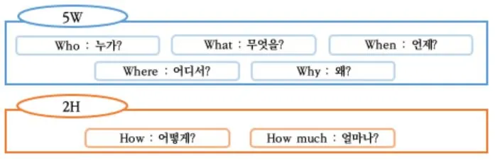 앞서 살펴본 로직 트리나 KJ법 이외에도 논리를 구성해주는 도구들은 많다. 그중에는 우리가 흔히 말하는 ‘육하원칙’을 반영한 도구도 있고, 글쓰기의 기본 구성과 관련된 도구들도 있다.