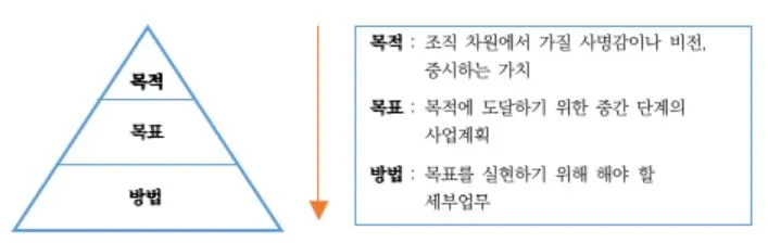 피라미드도는 최종적으로 따라야 할 방침이나 목적을 생각하며 논리를 구성하는데 도움을 주는 도구다. 개인 측면에서는 회사에 필요한 인재임을 증명하는 자기소개서에, 기업 측면에서는 비즈니스 목표에 적합한 사업계획을 생각해내는데 유용하다.