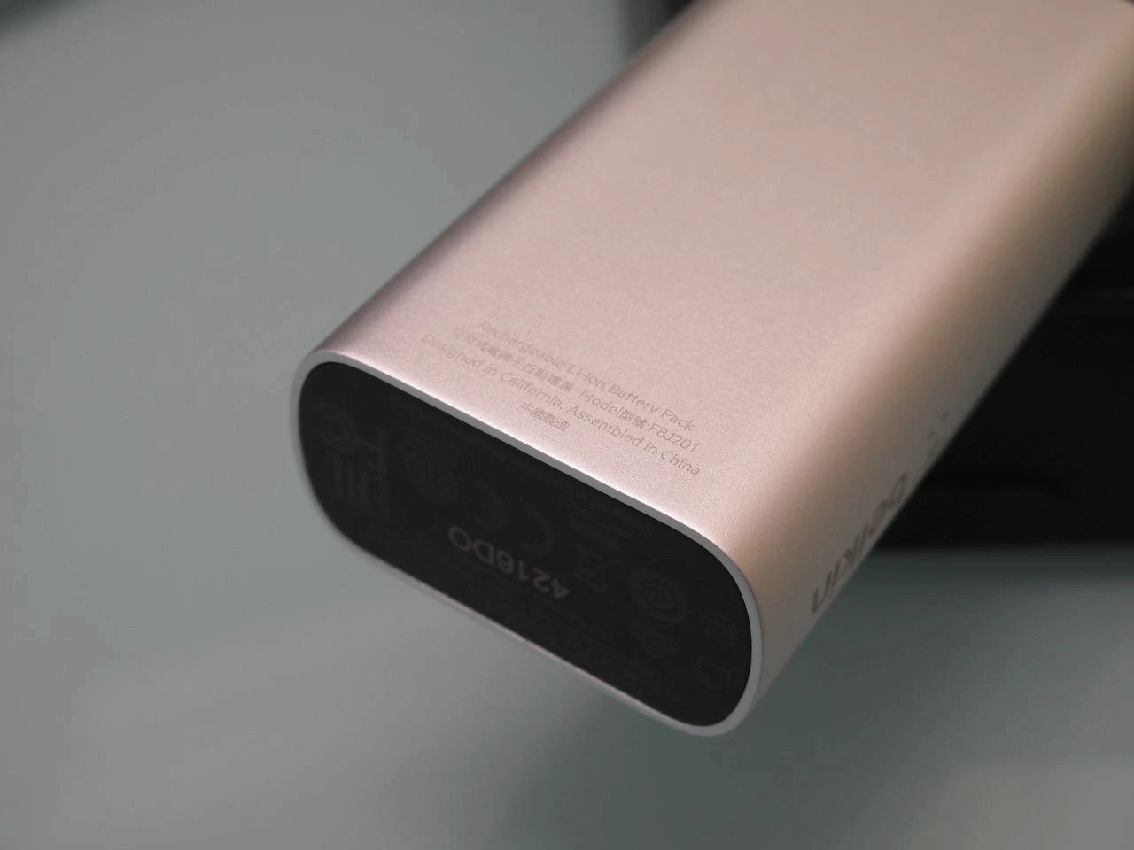 넓적하고 얇은 일반적인 보조배터리와는 달리 가늘고 둥근 바디를 가지며, 그립감이 상당하다.