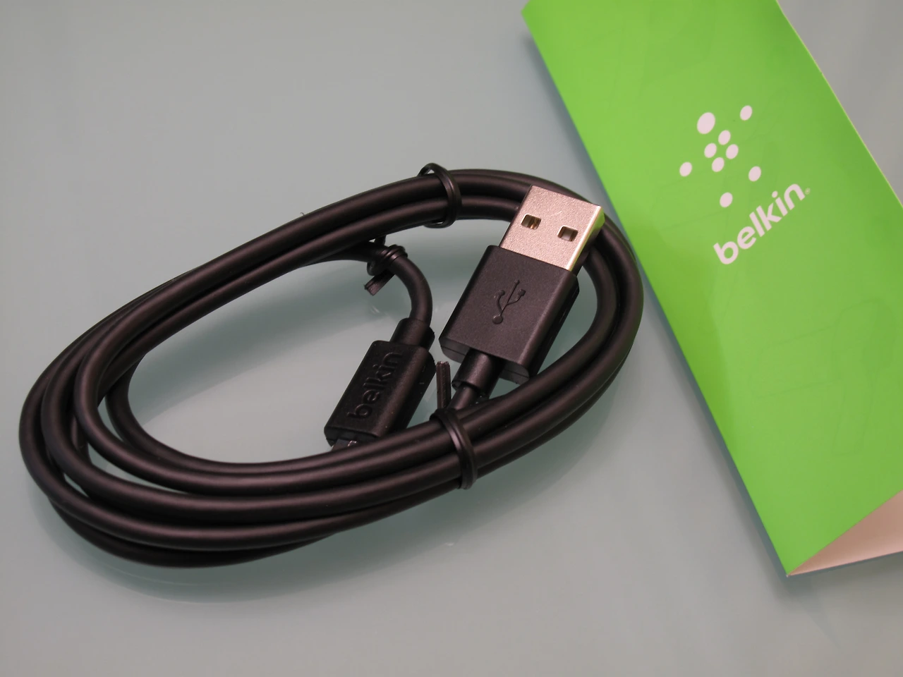 구성품은 간단한 이미지로 구성된 설명서, 벨킨 5핀 케이블(!) 1.2M, 배터리팩 본체 이렇게 3가지로 구성된다.