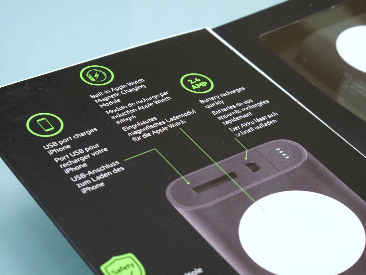 6700mAh의 용량을 가진 파워팩은 아이폰은 최대 3번, 애플 워치는 최대 8번을 충전 가능하다.