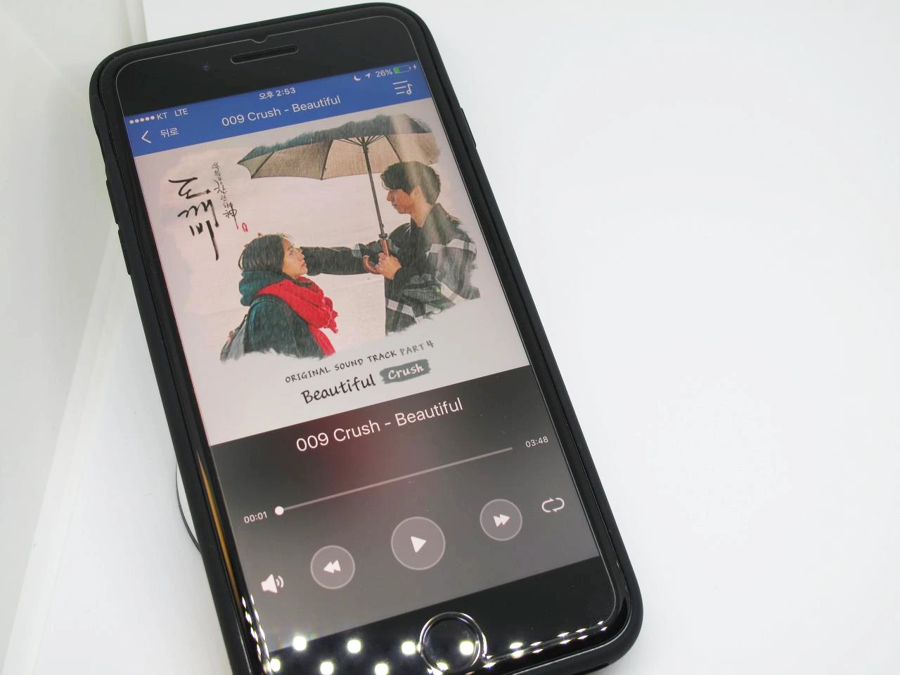 음악 목록에서는 제목과 앨범 아트가 나온다. 개인적으로 음악 목록에 앨범 아트가 나오지 않는다면 상당히 가독성(?)이 떨어진다. 원하는 노래 찾는데 시간이 많이 걸린단 말이다. 플레이어 또한 사진 뷰어 뺨치게 단순하며, 깔끔한 구성이다. 괜히 기능 많이 넣었다간, 자주 앱이 다운되는 것보단 훨씬 좋다. 백그라운드에서도 음악이 나오기 때문에 이어폰을 연결해서 음악을 듣는 데에도 문제없다. (잠금화면에서 앨범 아트 출력도 안정적인 편)