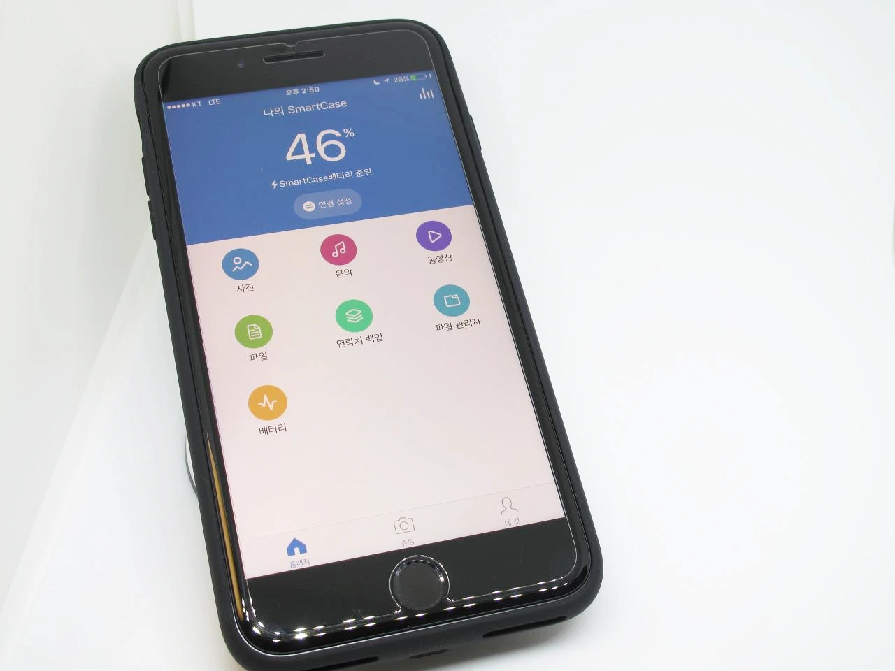 앱을 실행한 후, 케이스의 전원을 켜면, 다양한 기능에 접근할 수 있습니다.