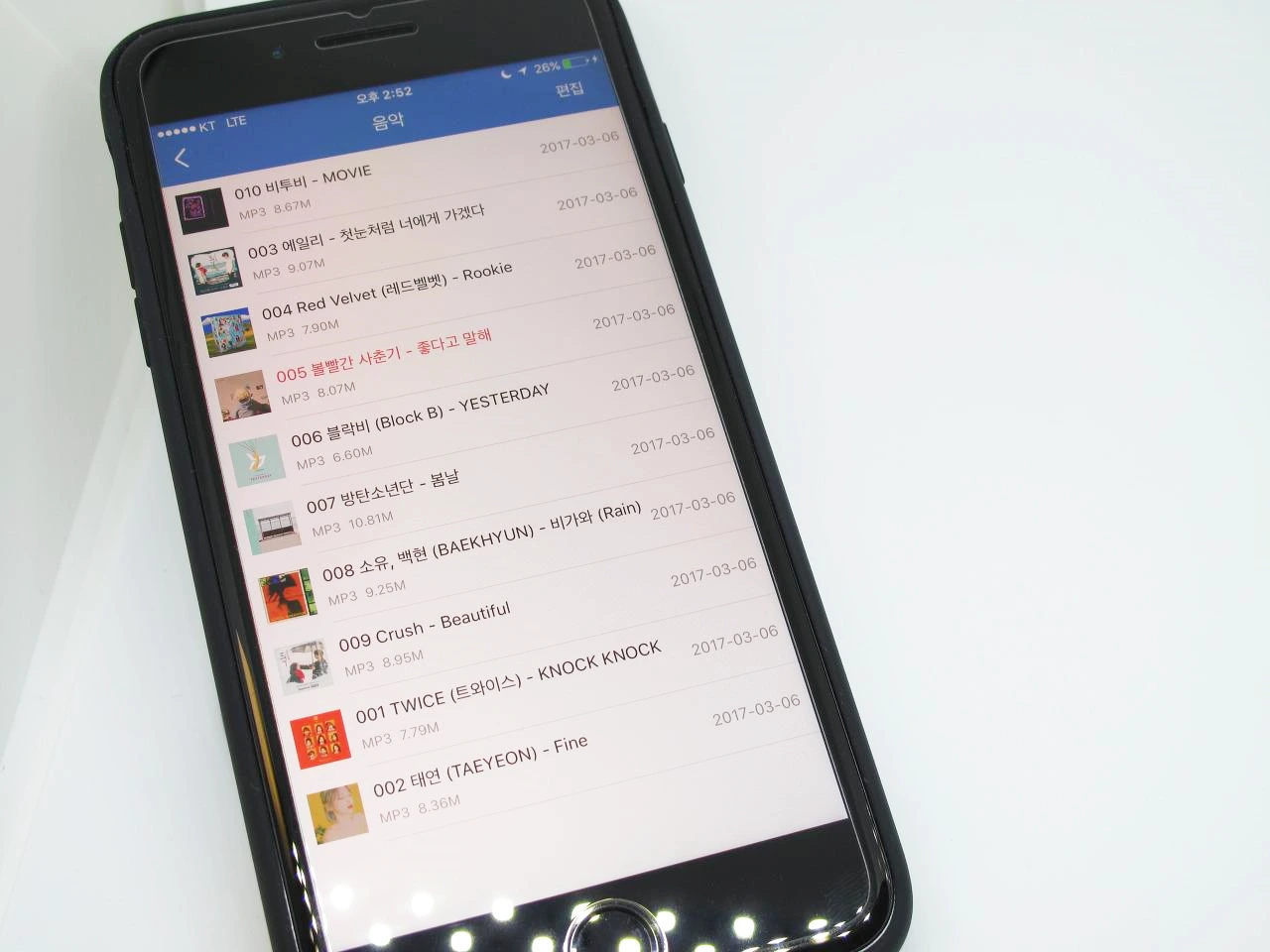 음악 정렬을 바꿀 수 있는 옵션은 없다, 일단 기본 정렬 기준은 내림차순인 것 같지만, 한글 내림차순을 지원하는지는 확인할 수가 없다.