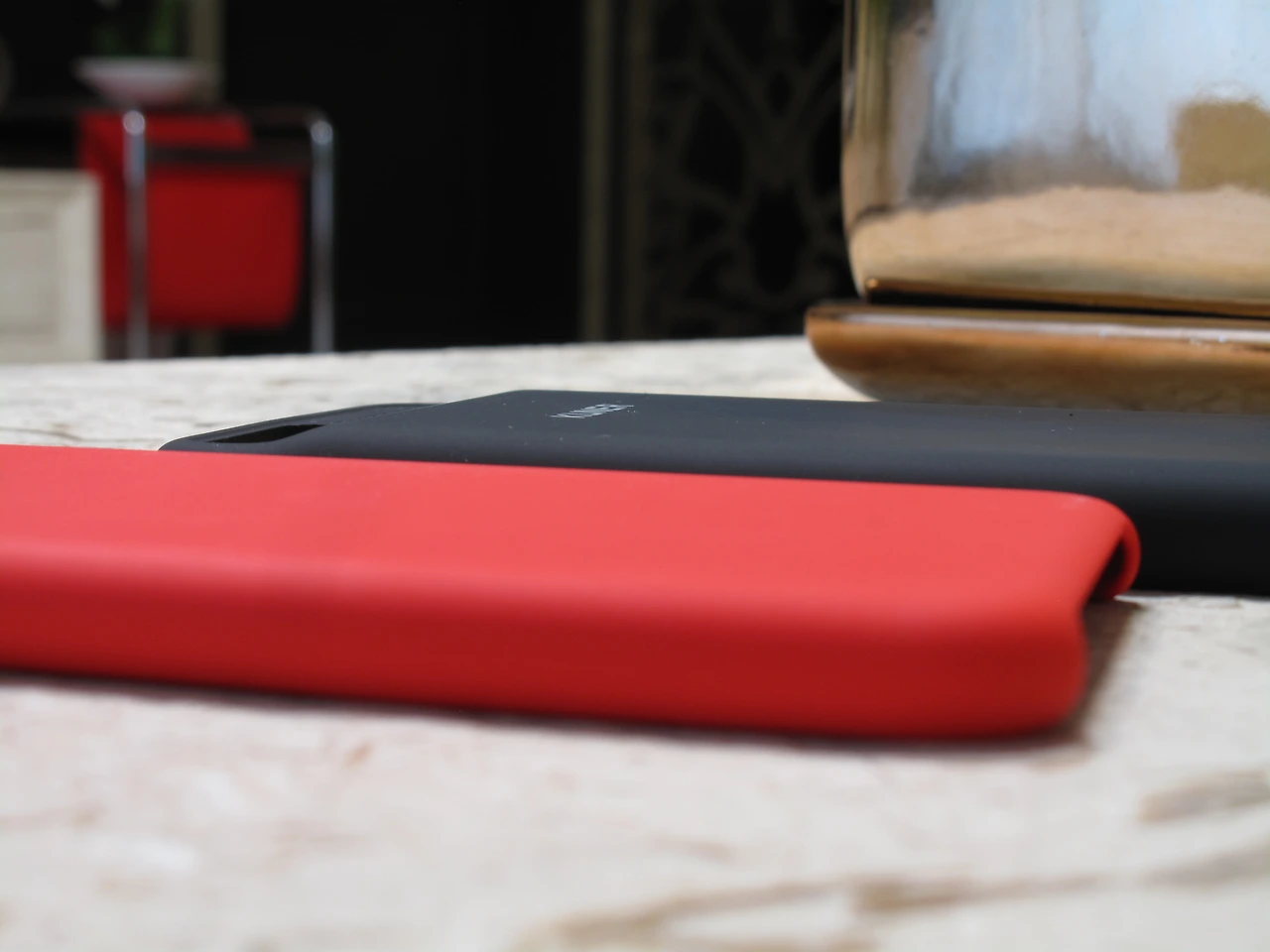 일단 재질은 두 제품 모두 동일한 실리콘이며, 애플은 자신들이 사용한 실리콘에 대해서 별다른 설명을 덧붙이지는 않지만, 아주 수준 높은 질의 실리콘을 사용하여, 매끈하고 깔끔한 느낌을 선사합니다. KUNER SMART CASE 또한, 개봉기에서 말한 것처럼 LSR 실리콘을 사용하여 방수는 물론이고 미끄럼 방지와 충격 흡수 기능을 가집니다. 하지만 정품 실리콘 케이스보다 약간 무른 실리콘을 사용하여 부드럽지만 쫀쫀한 감이 있으며, 표면의 실리콘 도포가 조금 더 두꺼운 느낌입니다.