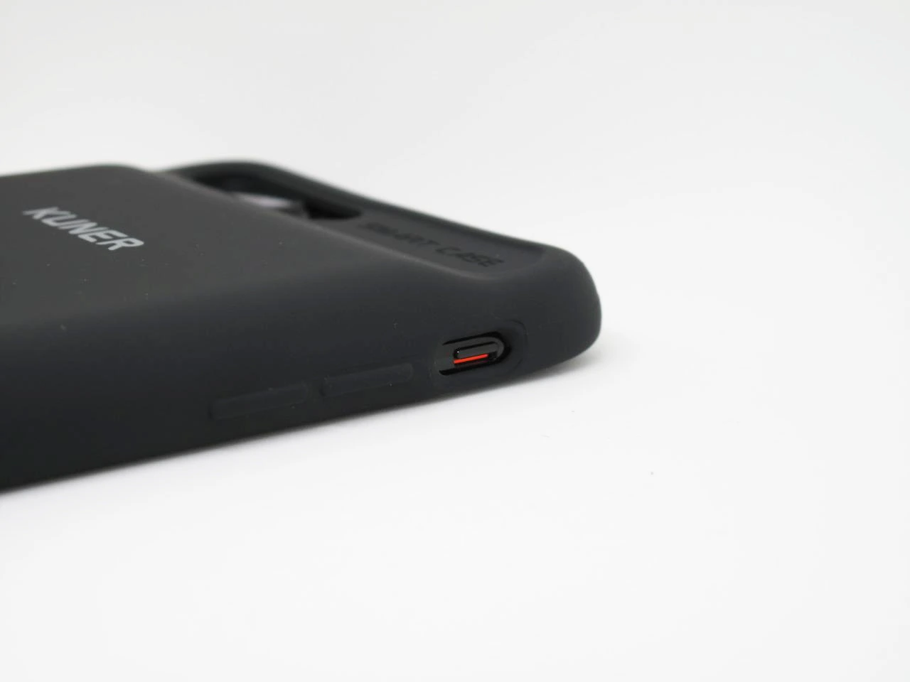KUNER SMART CASE의 안쪽면은 플라스틱으로 가공되어 있으며, 라이트닝 포트와 SD카드 확장 슬롯이 위치합니다. 제트 블랙 모델의 경우, 본체 스크래치에 민감한 편이라 케이스 안쪽 요철들이 약간 신경 쓰이지만, 실제로는 큰 문제는 없습니다. 물론 제트 블랙의 모델은 사용 전에 후측면 보호필름 부착을 권장합니다.