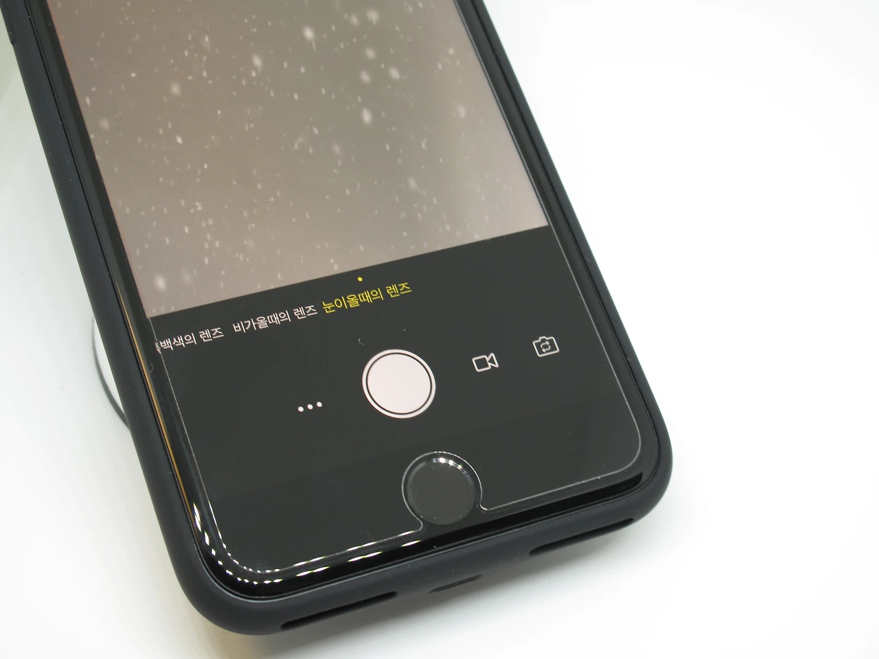 앱에는 카메라 기능이 내장되어 있어서, 메모리 카드로 바로 저장하거나 아이폰으로 저장하는 옵션을 제공한다. 메모리카드로 저장되는 기능은 유용할 것 같다. 아이폰 망원렌즈 기능도 업데이트를 통해 지원했으면 하는 바람이다. 필터에는 일반적인 색감필터뿐만 아니라 비 오거나 눈 오는 것도 있지만 단순 애니메이션 수준에 그친다.