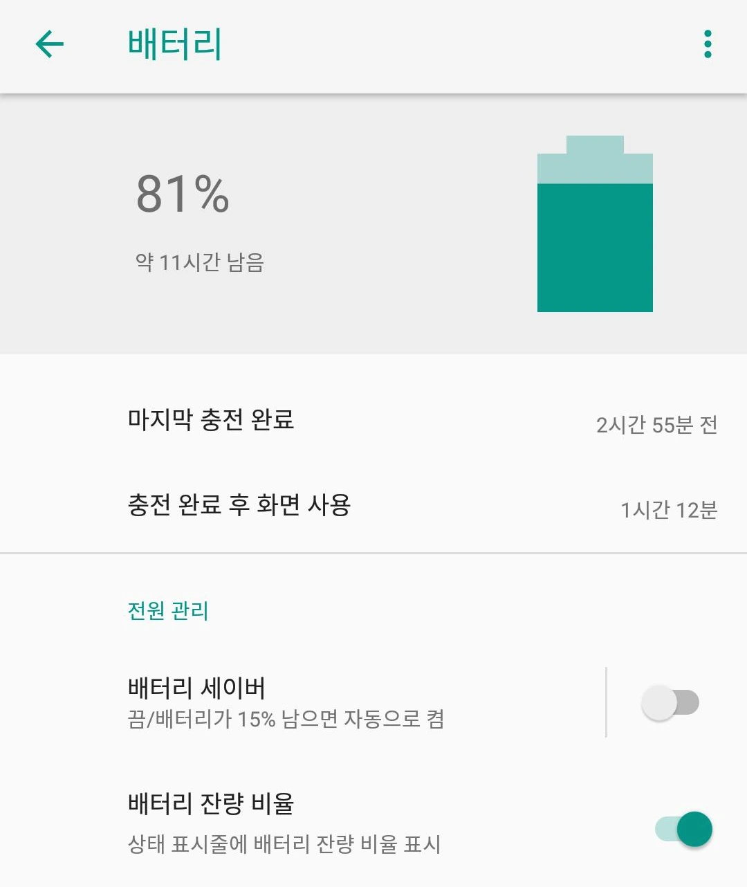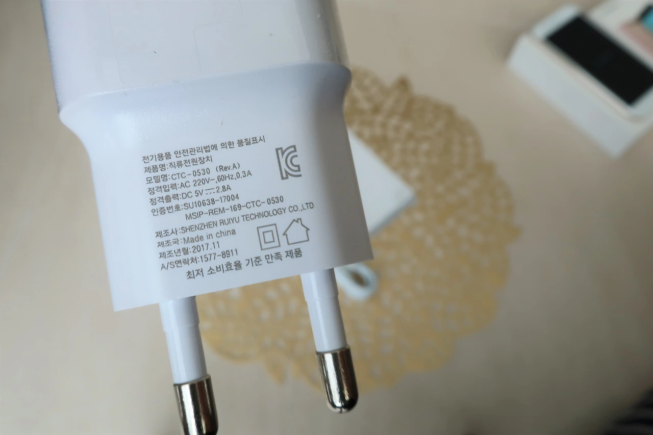 충전은 8.0 오레오부터 고속 충전을 지원한다고는 하는데, 고속충전기를 써봐도 도무지 고속 충전이 활성화되지 않는다. 사실 고속 충전이라고 해도 퀄컴 1.0이라고 하니 5V에 3A 수준일 것 같다. 동봉된 충전기가 5V에 2.8V이기 때문. 필자가 사용한 충전기는 엘지 퀄컴 고속 충전기로 일반 5V2A, 최대 9V 3A 출력이 가능한 모델이었다.