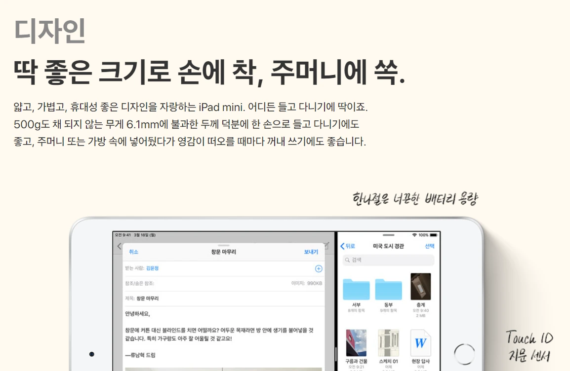 미니 시리즈 최초로 애플 펜슬이 지원됩니다. 아쉽게도 애플 펜슬 1만 지원됩니다.