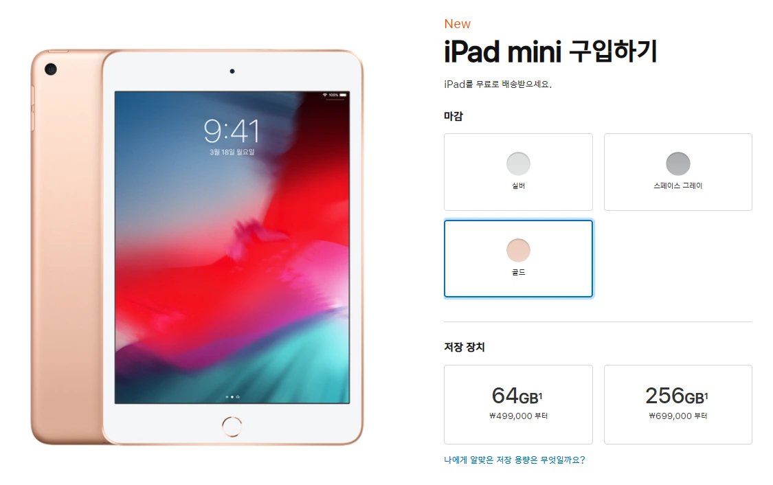 가격은 놀랍습니다. 기존 아이패드 미니의 가격에서 변하지 않고 64GB 기준 499,000원부터 시작입니다.