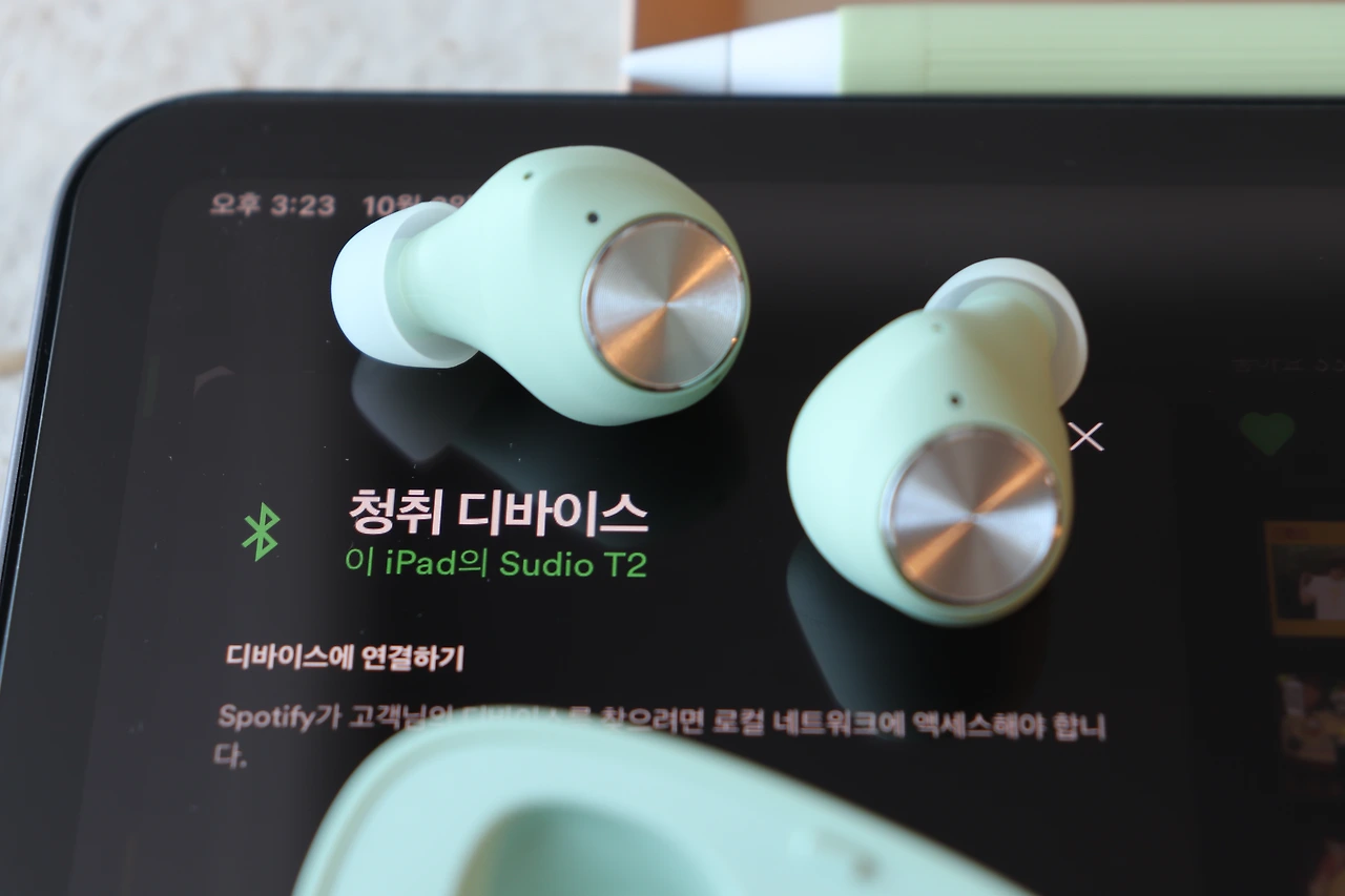 3. 리시버: Sudio T2, 기본 연결 상태(모든 블루투스 디폴트 값)