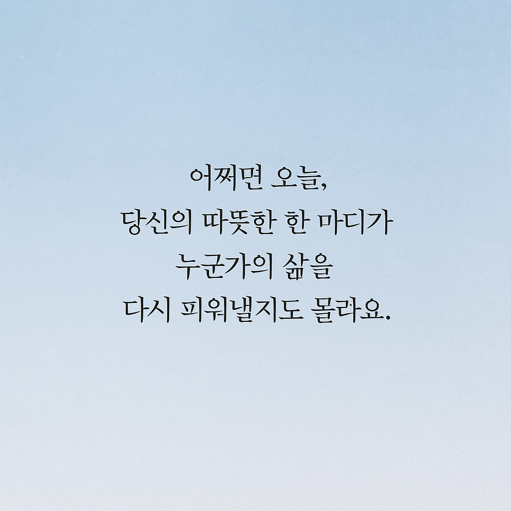 우리는 알지 못한다. 지금 내가 건넨 이 짧은 말이, 누군가에게는 오늘을 버텨내는 이유가 될 수 있다는 걸.