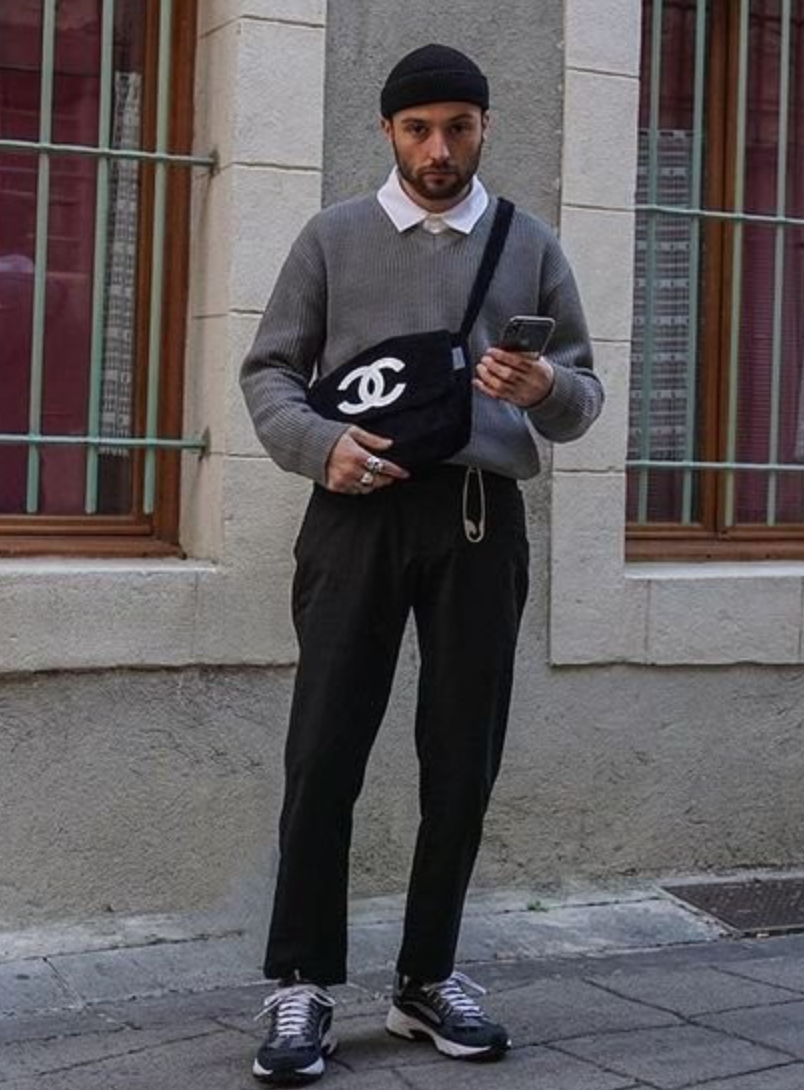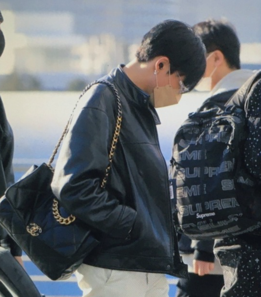 남자가 메고 있는 빅 사이즈의 샤넬 백. 그토록 묘한 조합이라니! 검은색 샤넬 멕시 19백. 그게 갖고 싶었습니다. 1099만원.